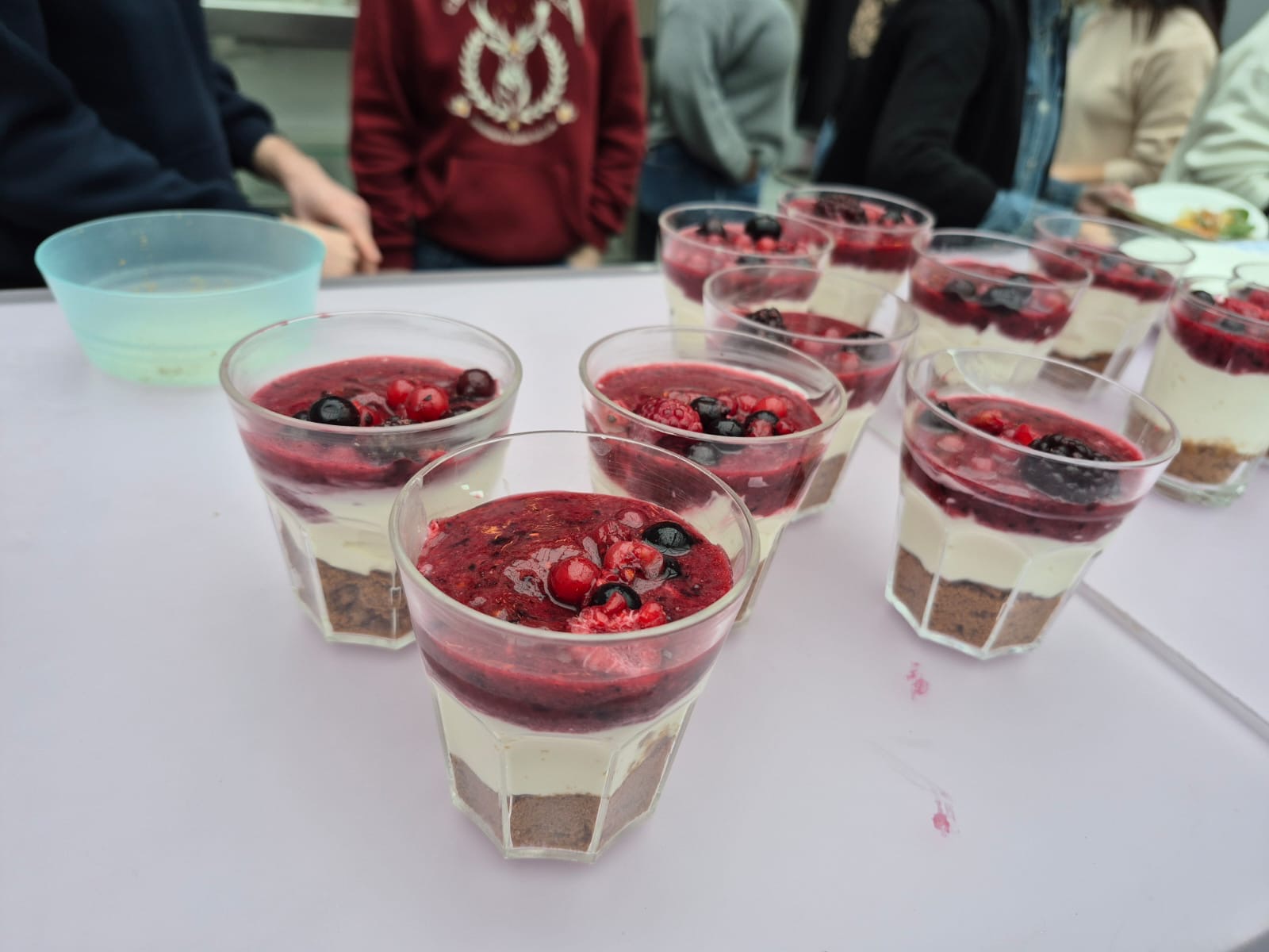 Le cheesecake arrive ensuite, en version fruitée et légère, préparé en verrines individuelles.